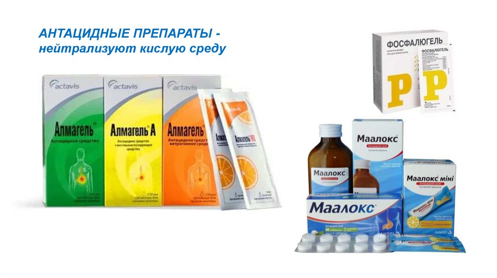 АНТАЦИДНЫЕ ПРЕПАРАТЫ нейтрализуют кислую среду52.