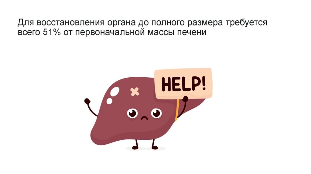 Для восстановления органа до полного размера требуетсявсего 51% от первоначальной массы печени