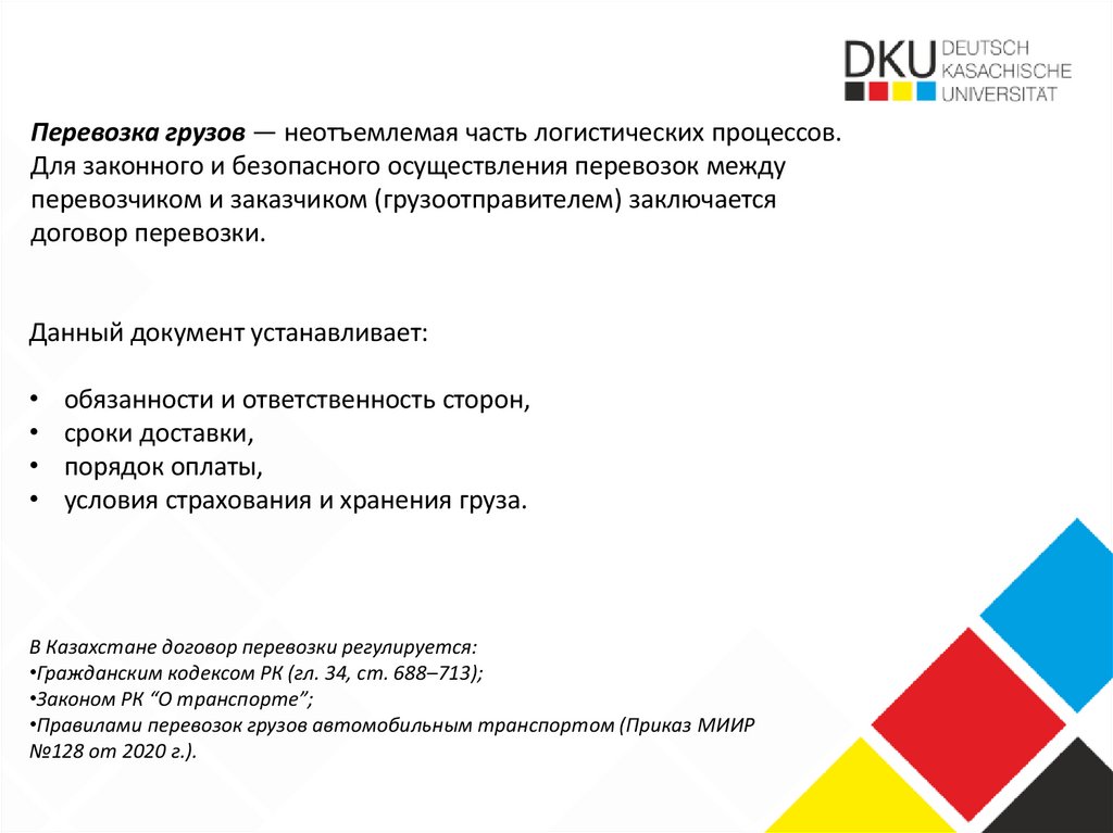 Составление договора перевозкиAlipova Alima
