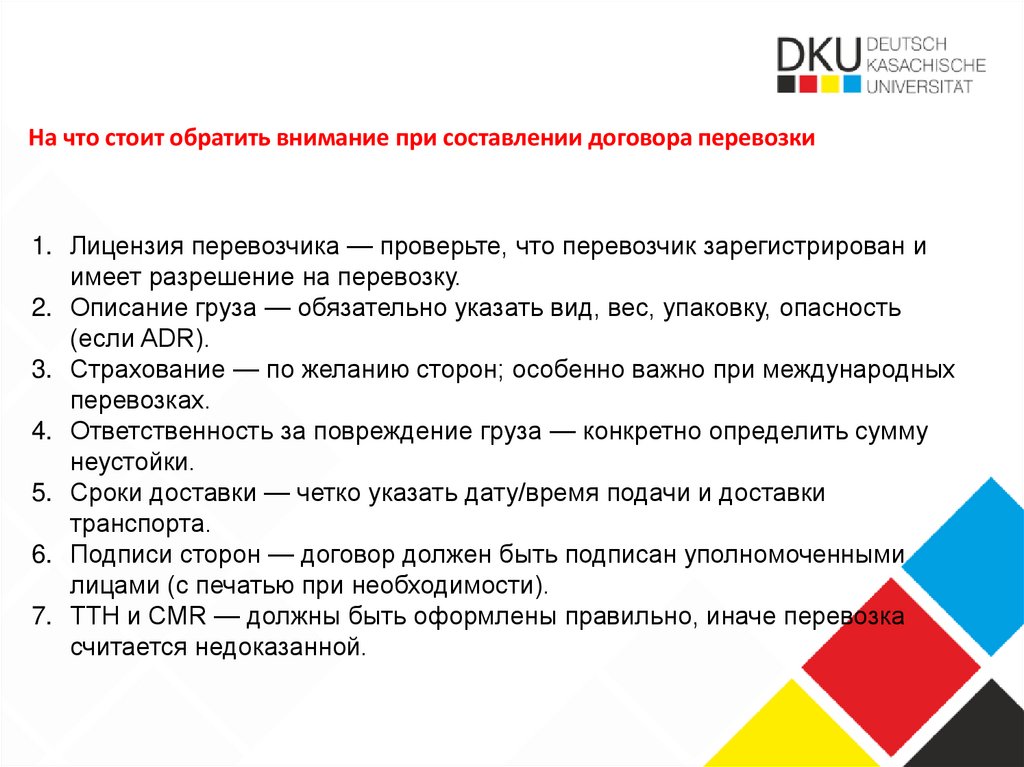 На что стоит обратить внимание при составлении договора перевозки1. Лицензия перевозчика — проверьте, что перевозчик зарегистрирован и
