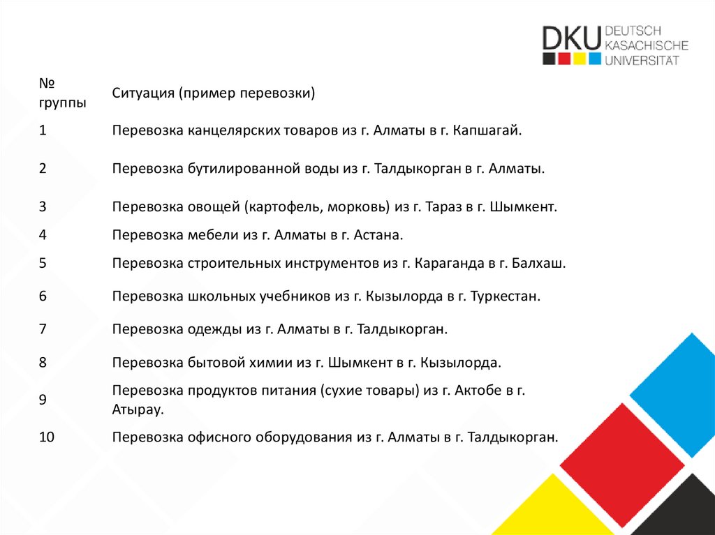 Ситуация (пример перевозки)