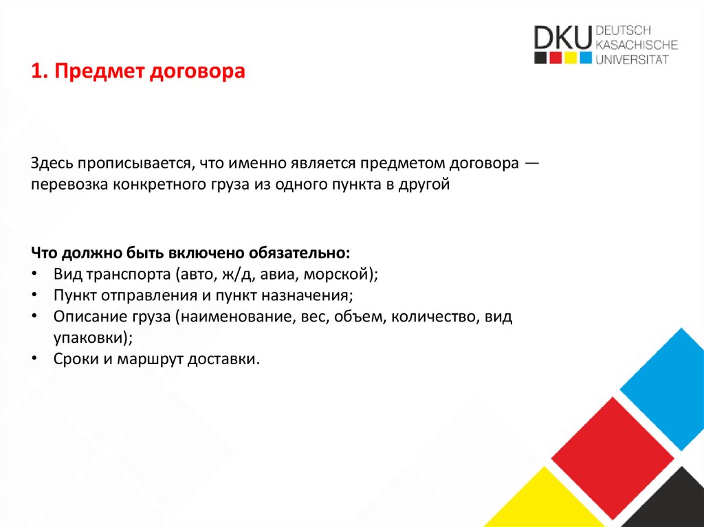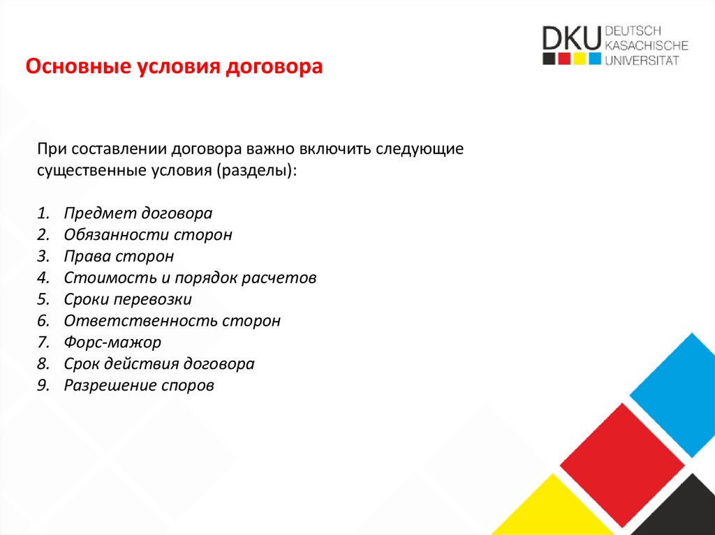 Основные условия договораПри составлении договора важно включить следующие