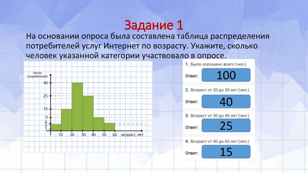 потребителей услуг Интернет по возрасту. Укажите, сколько