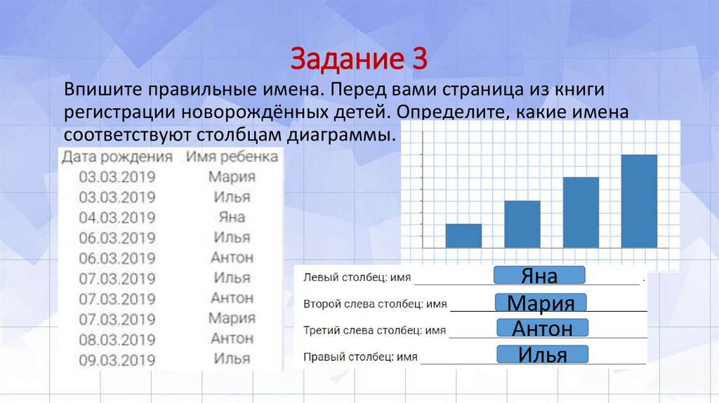 Задание 3Впишите правильные имена. Перед вами страница из книги