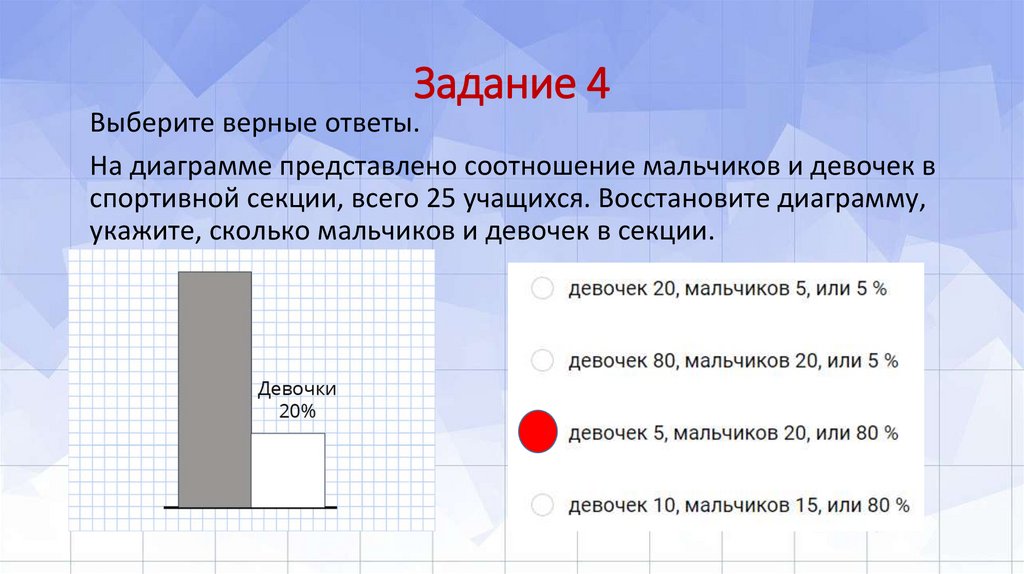 спортивной секции, всего 25 учащихся. Восстановите диаграмму,