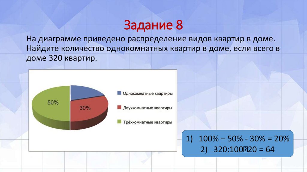 Задание 8На диаграмме приведено распределение видов квартир в доме.