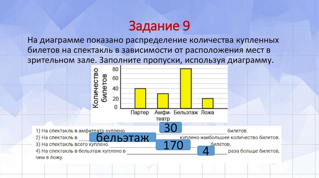 зрительном зале. Заполните пропуски, используя диаграмму.