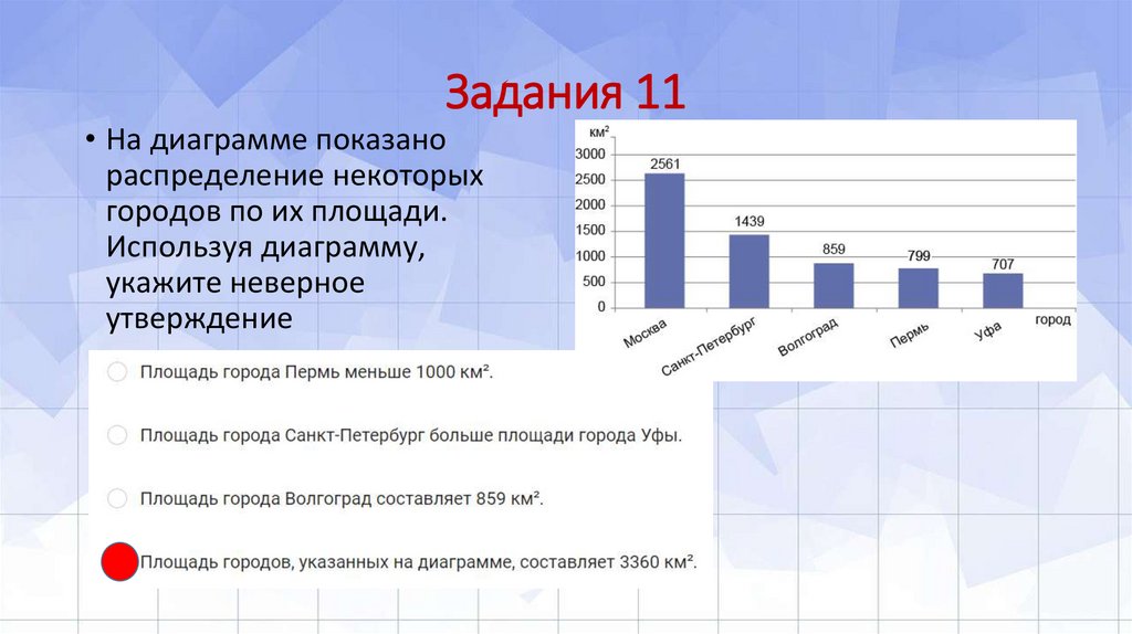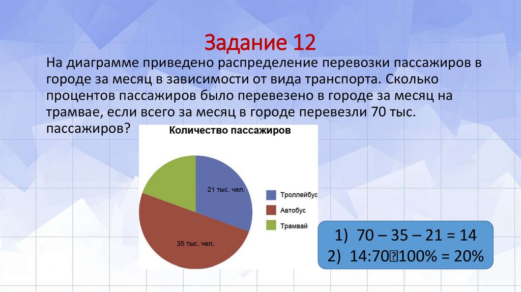 Задание 12На диаграмме приведено распределение перевозки пассажиров в