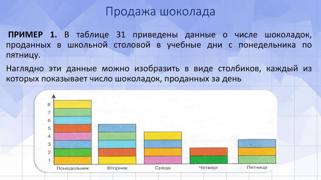 Наглядно эти данные можно изобразить в виде столбиков, каждый из