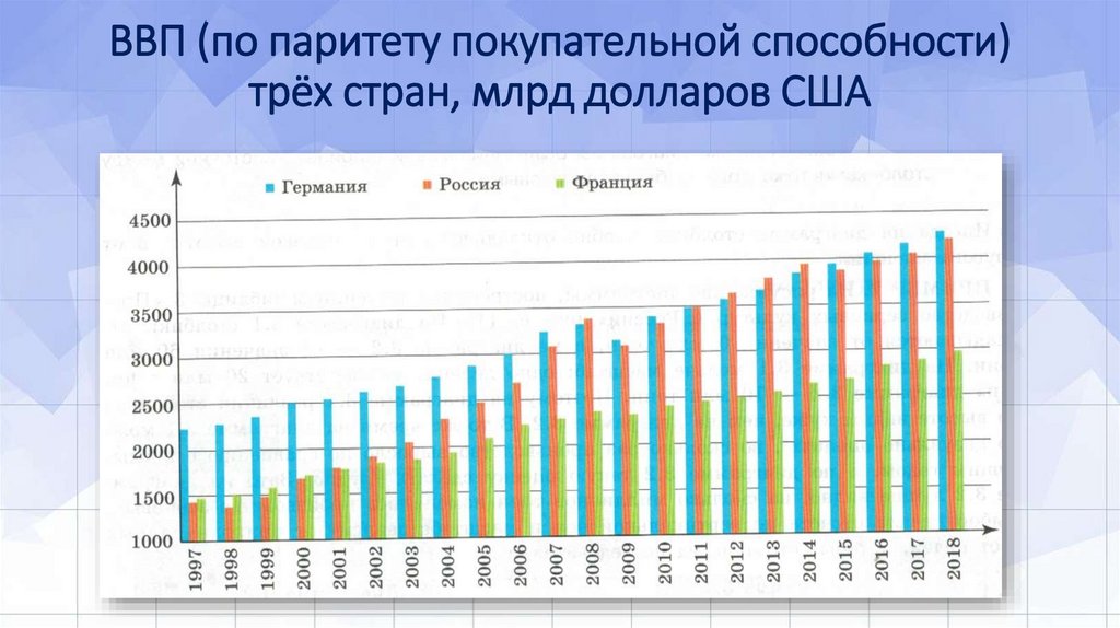 ВВП (по паритету покупательной способности)трёх стран, млрд долларов США