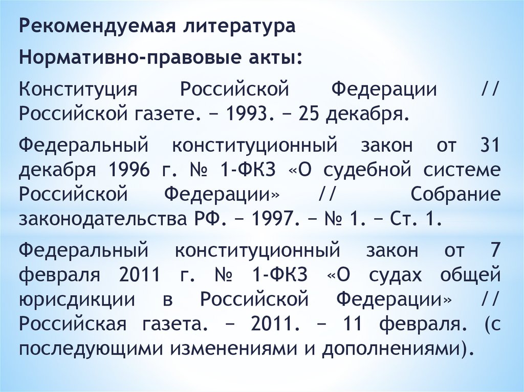 декабря 1996 г. № 1-ФКЗ «О судебной системе