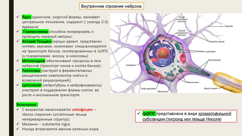 стимулов, проведения импульсов к другим нейронам, мышечным или секреторным клеткам.