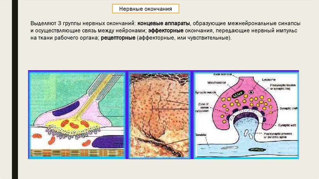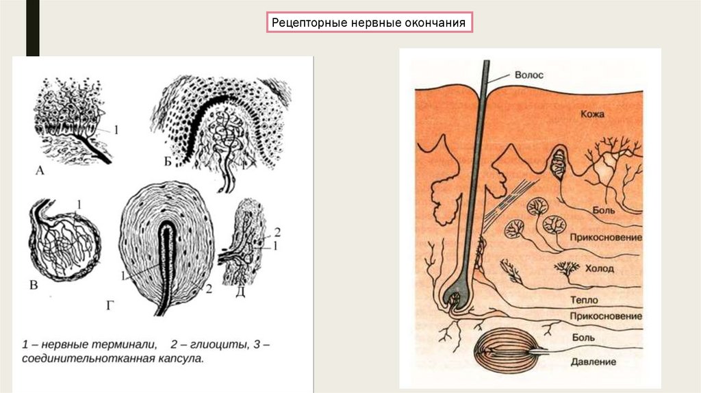 на ткани рабочего органа; рецепторные (аффекторные, или чувствительные).