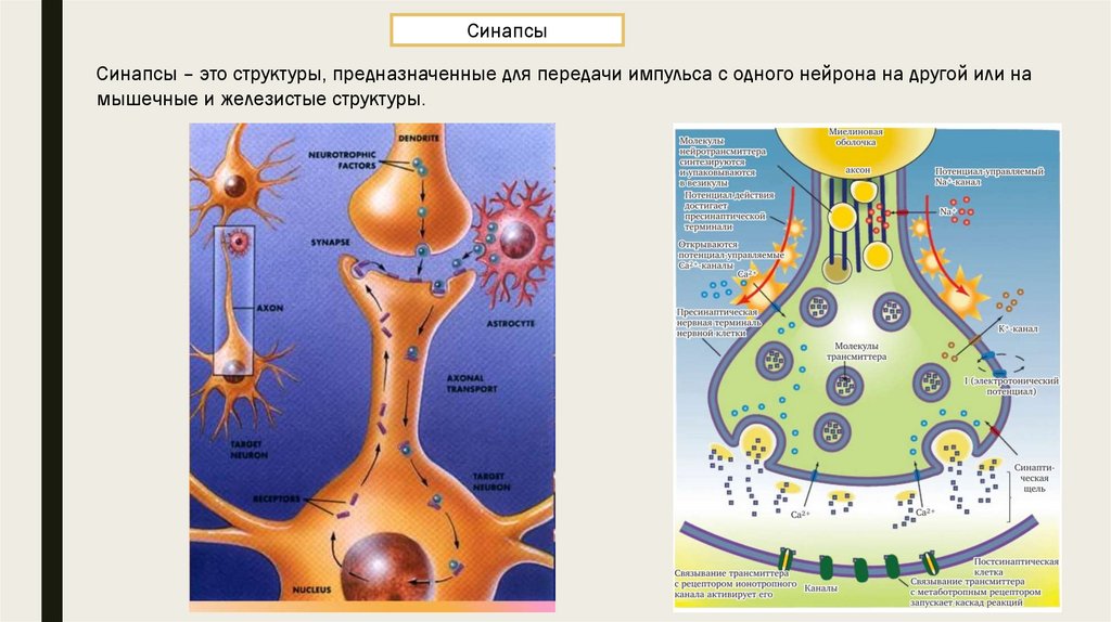 СинапсыСинапсы – это структуры, предназначенные для передачи импульса с одного нейрона на другой или на