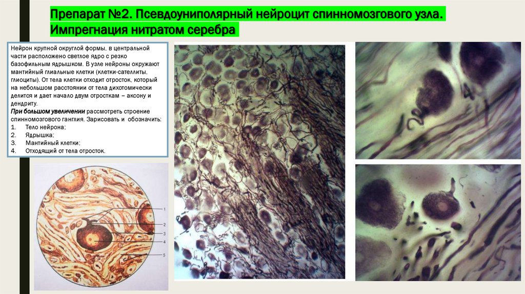 Препарат №2. Псевдоуниполярный нейроцит спинномозгового узла.Импрегнация нитратом серебра