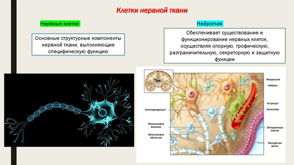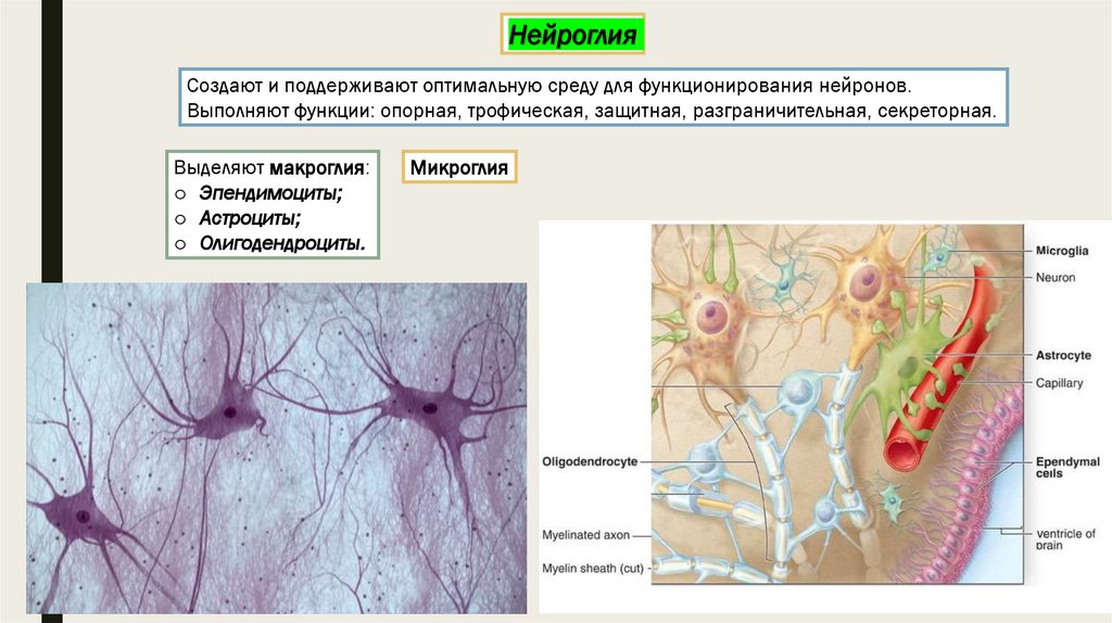 НейроглияСоздают и поддерживают оптимальную среду для функционирования нейронов.