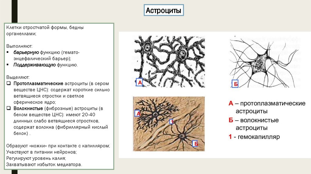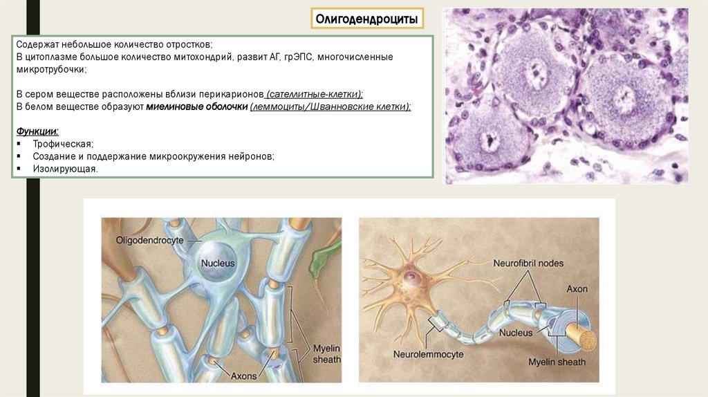 ОлигодендроцитыСодержат небольшое количество отростков;