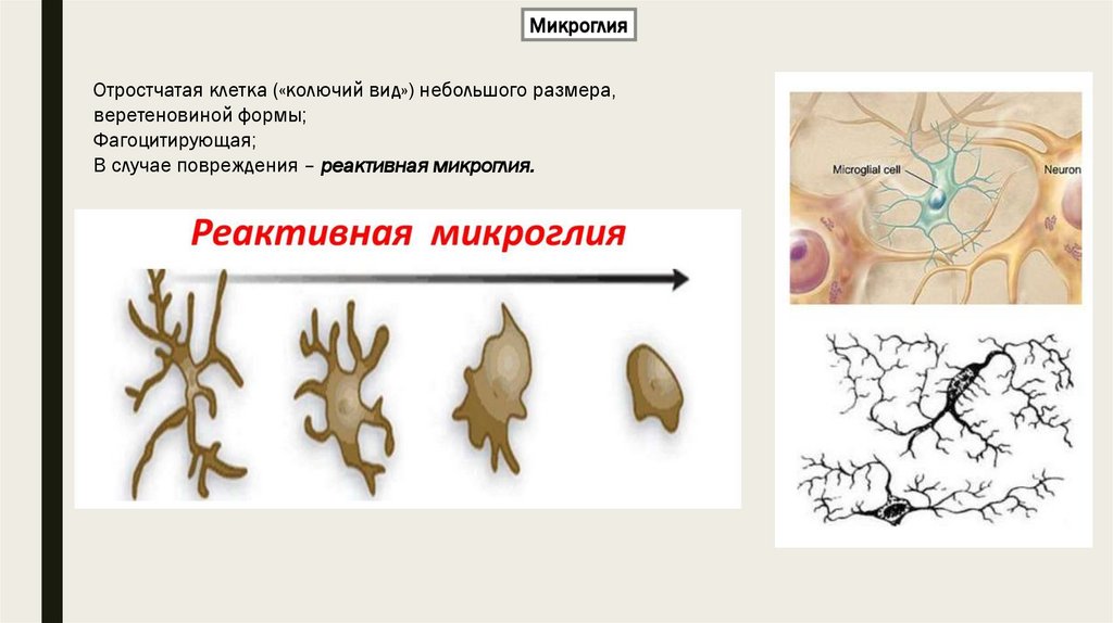 МикроглияОтростчатая клетка («колючий вид») небольшого размера,