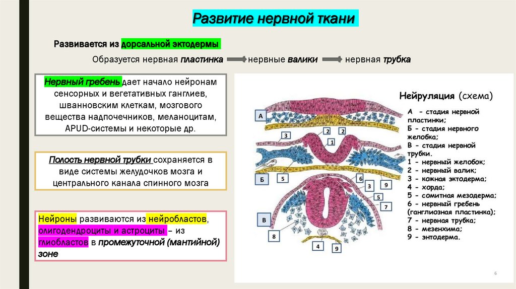 Развитие нервной тканиРазвивается из дорсальной эктодермы