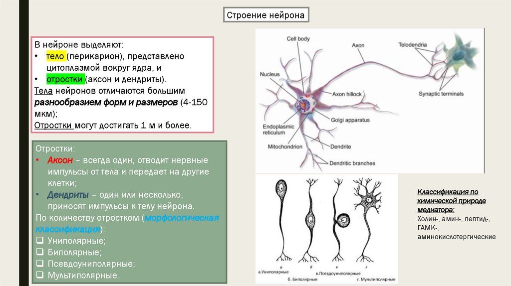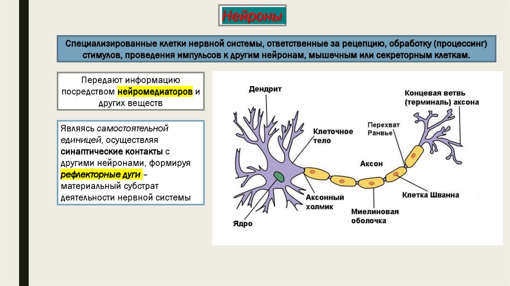 НейроныСпециализированные клетки нервной системы, ответственные за рецепцию, обработку (процессинг)
