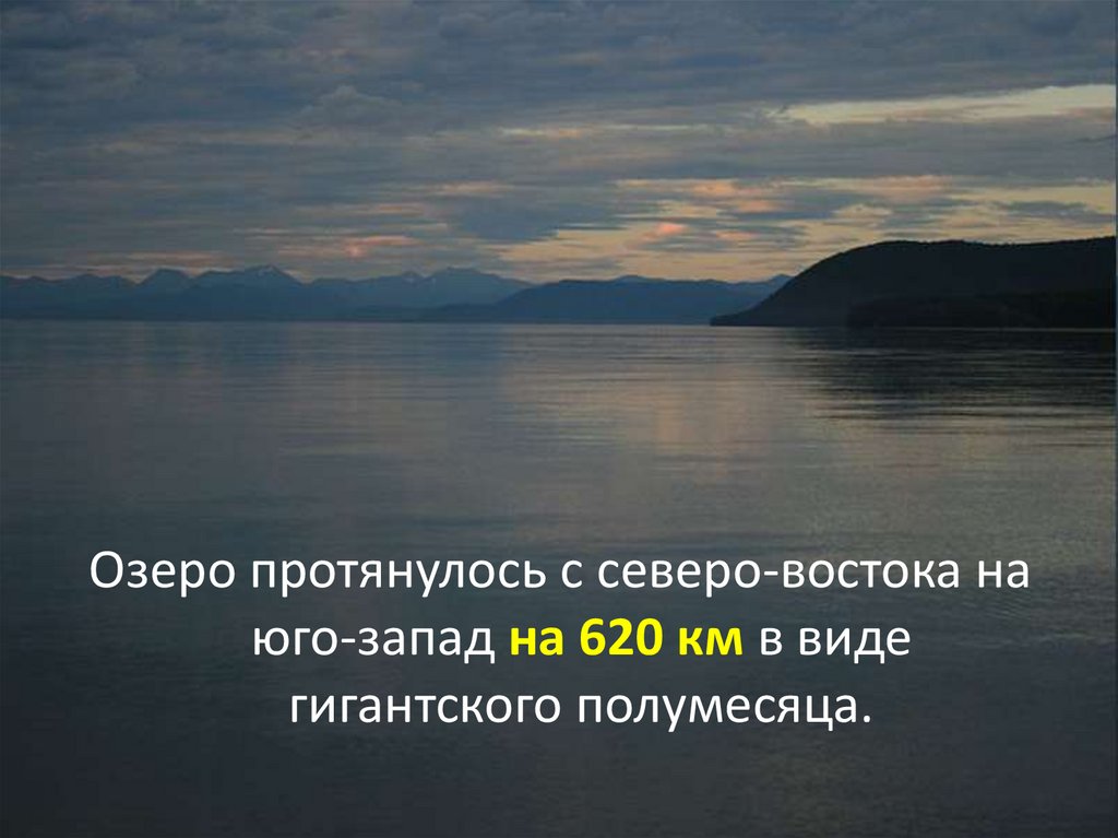 Озеро протянулось с северо-востока наюго-запад на 620 км в виде