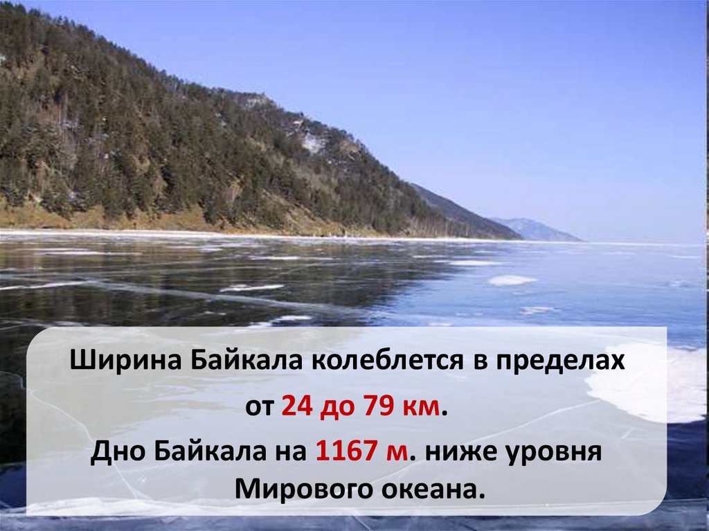 Ширина Байкала колеблется в пределахот 24 до 79 км.