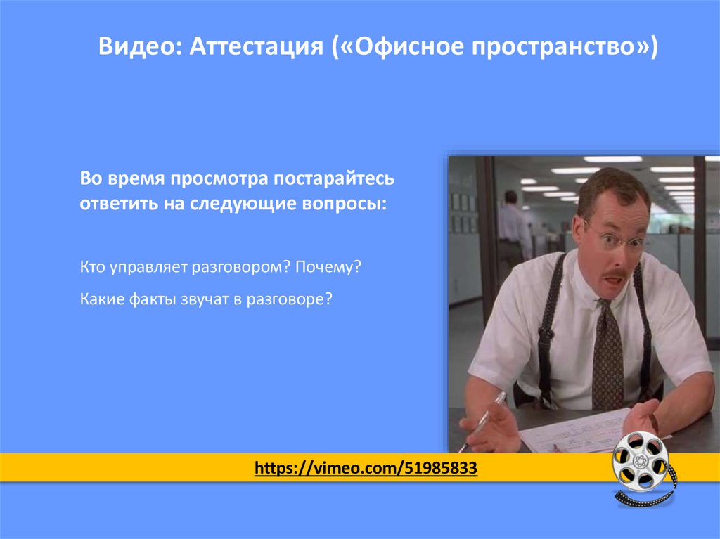 Видео: Аттестация («Офисное пространство»)Во время просмотра постарайтесь