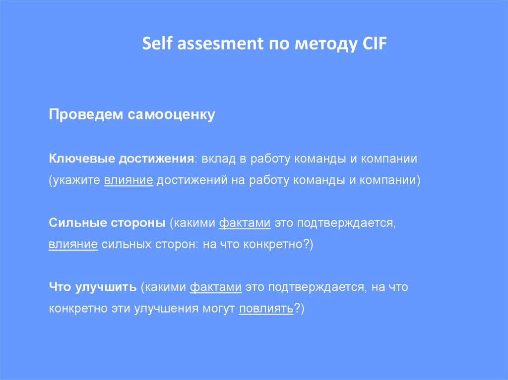 Self assesment по методу CIFПроведем самооценку