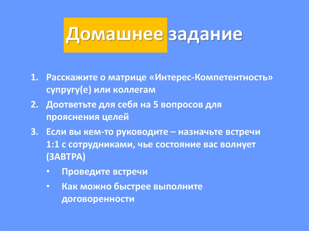Домашнее задание1. Расскажите о матрице «Интерес-Компетентность»