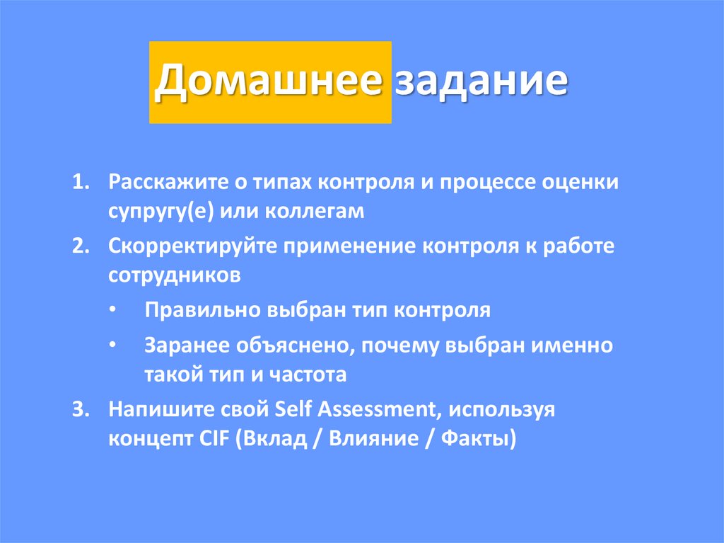 Домашнее задание1. Расскажите о типах контроля и процессе оценки