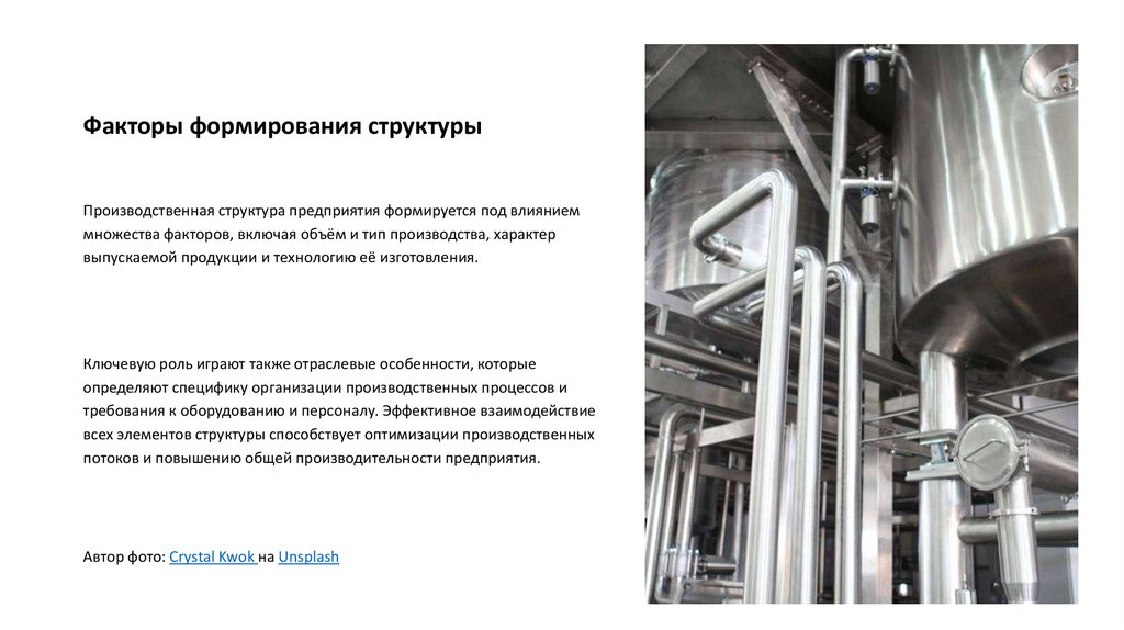 Факторы формирования структурыПроизводственная структура предприятия формируется под влиянием
