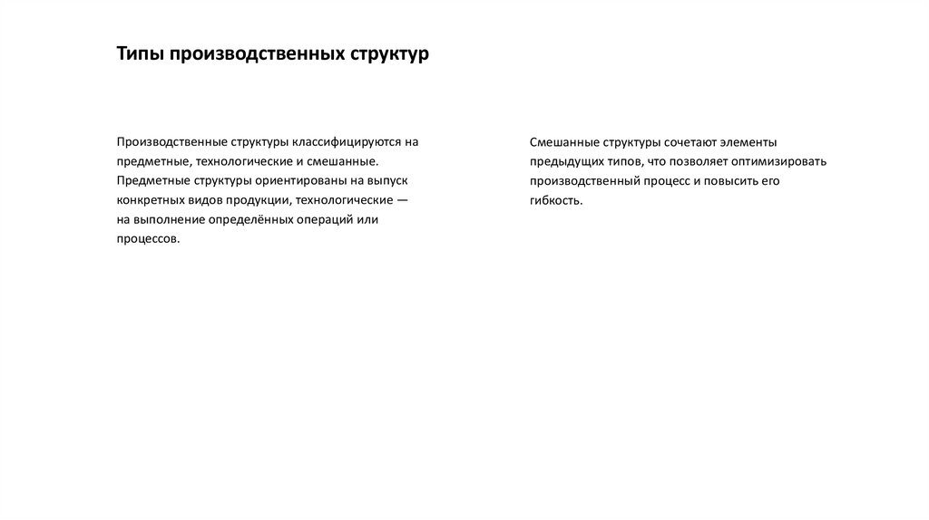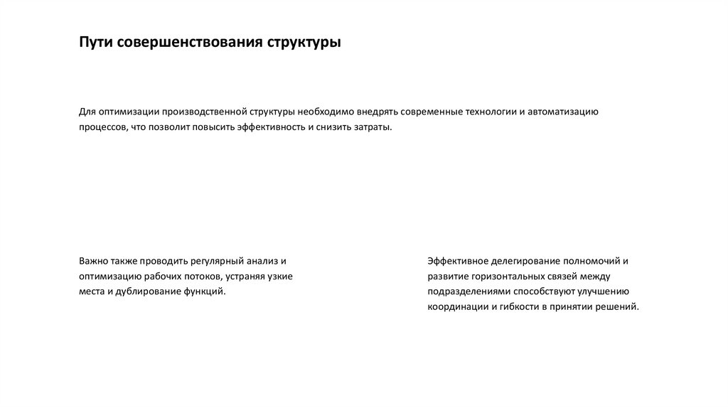Пути совершенствования структурыДля оптимизации производственной структуры необходимо внедрять современные технологии и автоматизацию