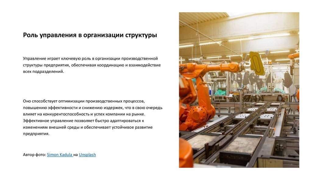 Роль управления в организации структурыУправление играет ключевую роль в организации производственной