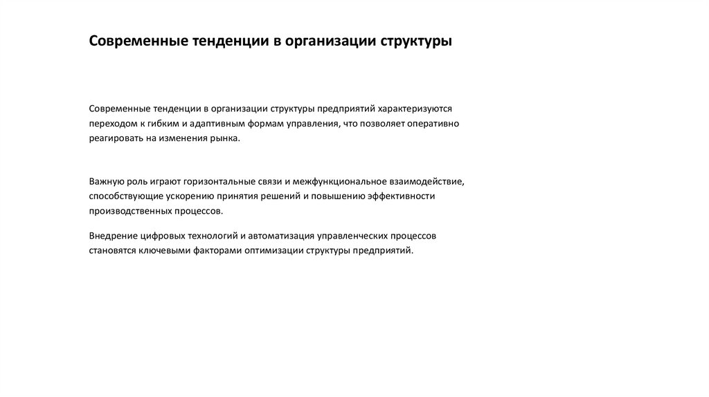 Современные тенденции в организации структурыСовременные тенденции в организации структуры предприятий характеризуются