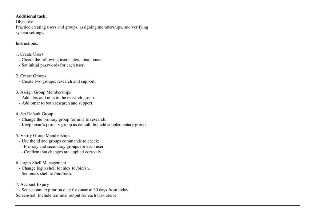P.S I need screenshots of all commands from your virtual machine where I can see your name/surname