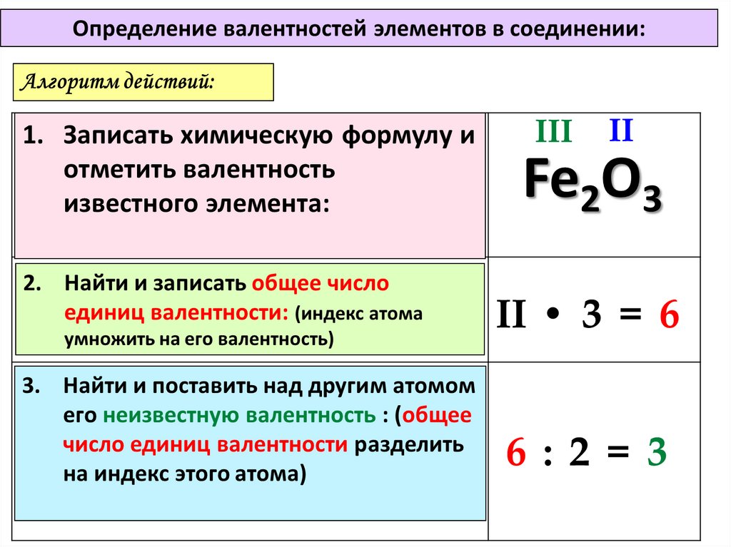Используя алгоритм действий, определите валентности