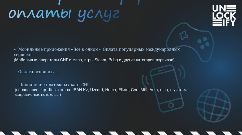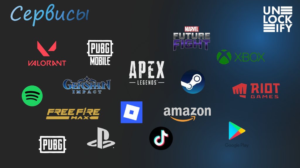 (Мобильные операторы СНГ и мира, игры Steam, Pubg и другие категории сервисов)