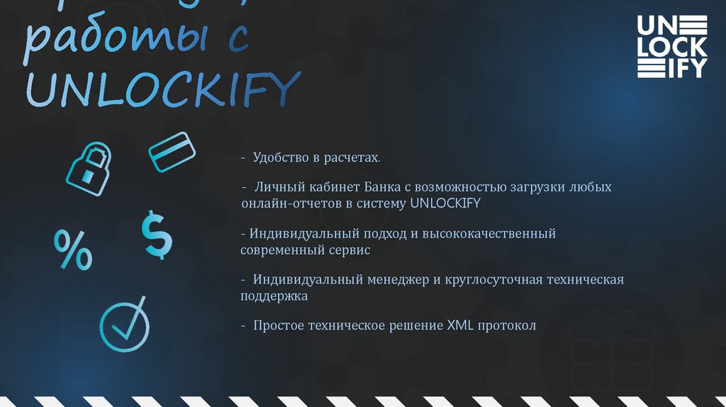 - Удобство в расчетах.- Личный кабинет Банка с возможностью загрузки любых