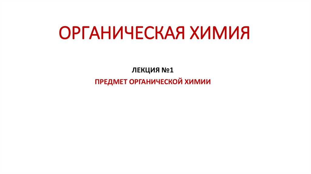 ЛЕКЦИЯ №1ПРЕДМЕТ ОРГАНИЧЕСКОЙ ХИМИИ