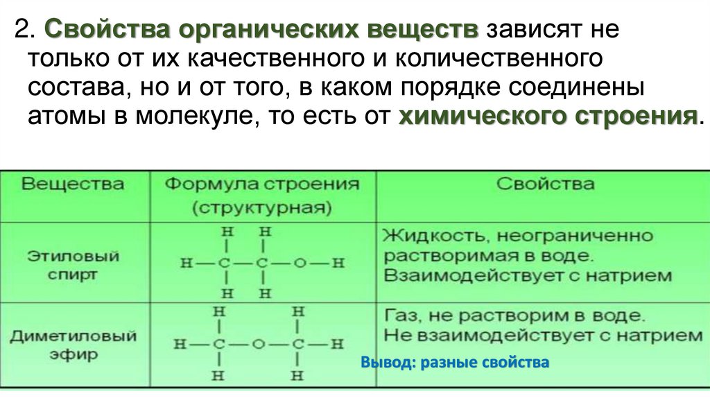 2. Свойства органических веществ зависят нетолько от их качественного и количественного