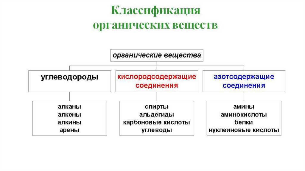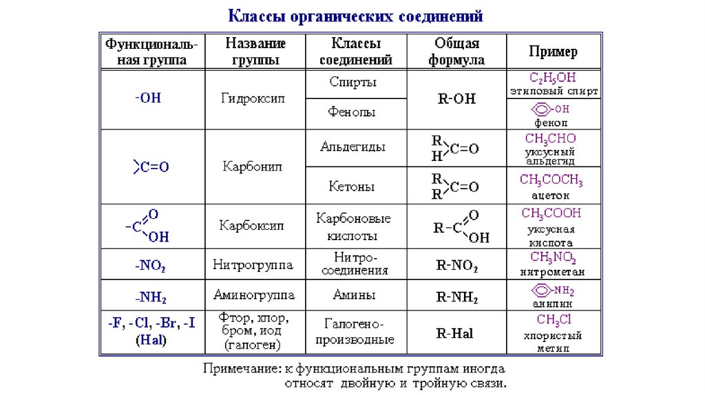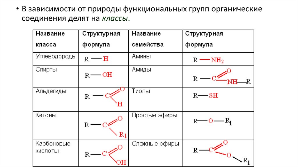 • В зависимости от природы функциональных групп органическиесоединения делят на классы.