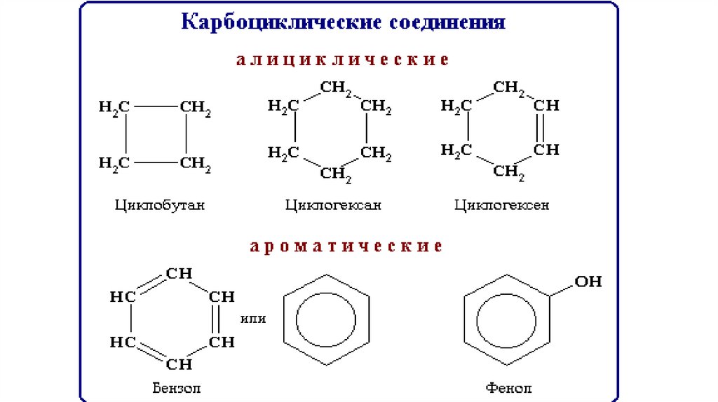 Циклические соединения Карбоциклические соединения содержат вцикле только атомы углерода.