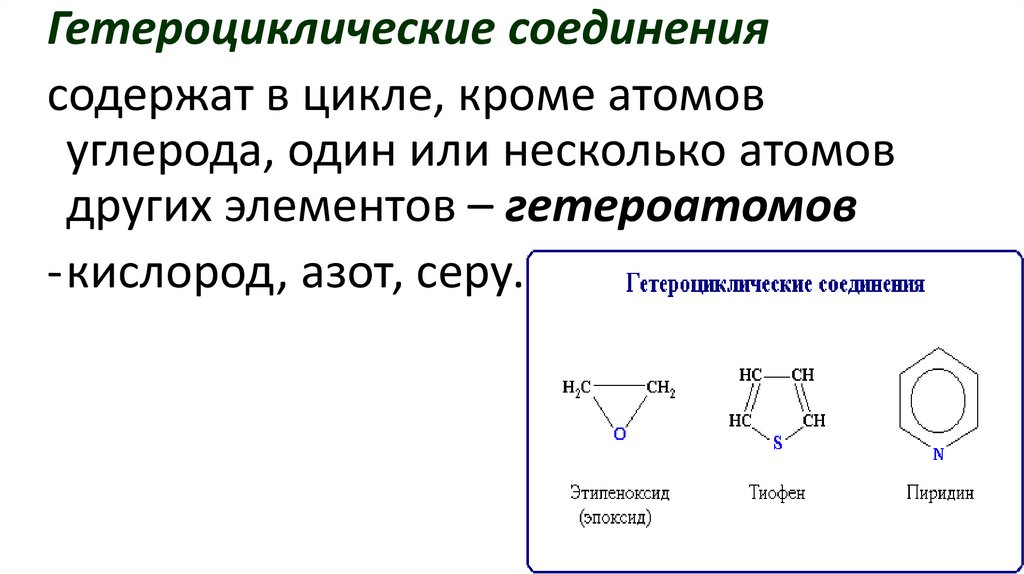 Гетероциклические соединениясодержат в цикле, кроме атомов