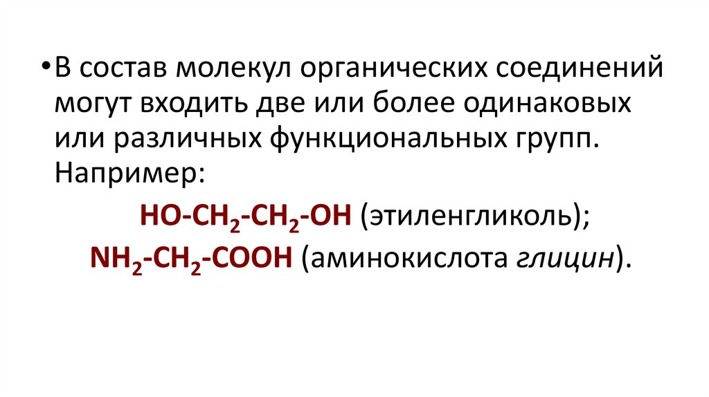 •В состав молекул органических соединениймогут входить две или более одинаковых