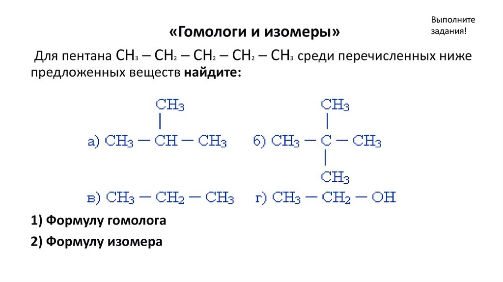 Изомеры – это вещества, имеющие одинаковыйкачественный и количественный состав молекул