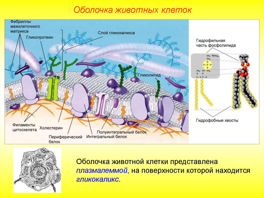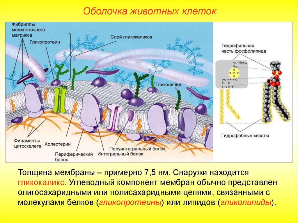 Оболочка животных клетокТолщина мембраны – примерно 7,5 нм. Снаружи находится