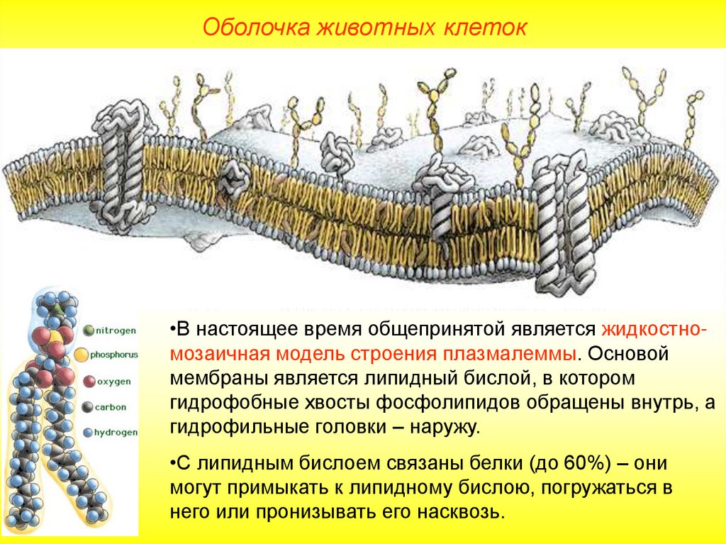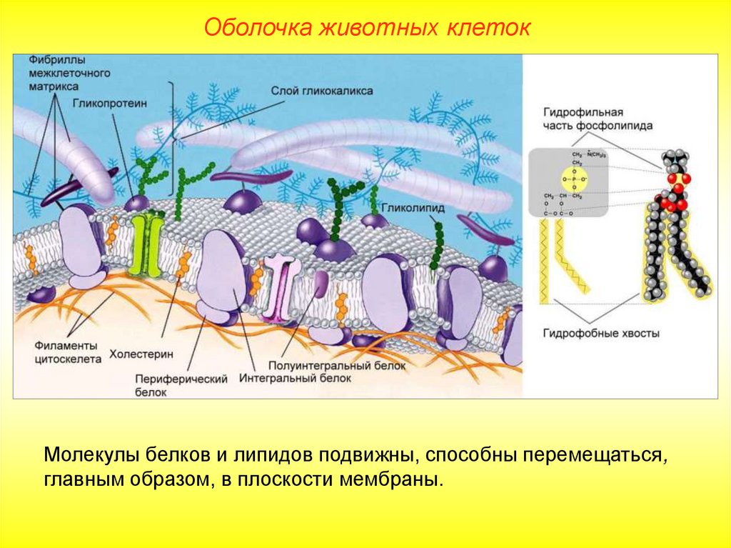 Оболочка животных клетокМолекулы белков и липидов подвижны, способны перемещаться,
