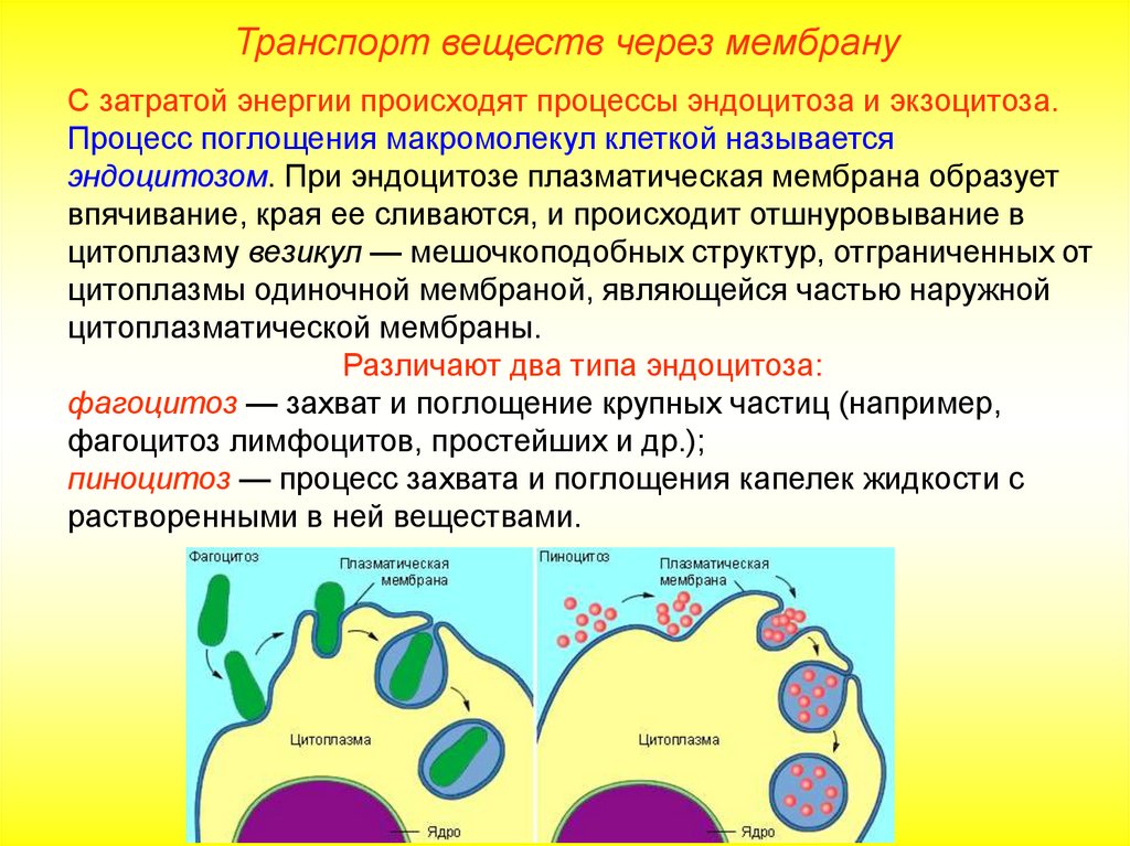 Транспорт веществ через мембрануС затратой энергии происходят процессы эндоцитоза и экзоцитоза.