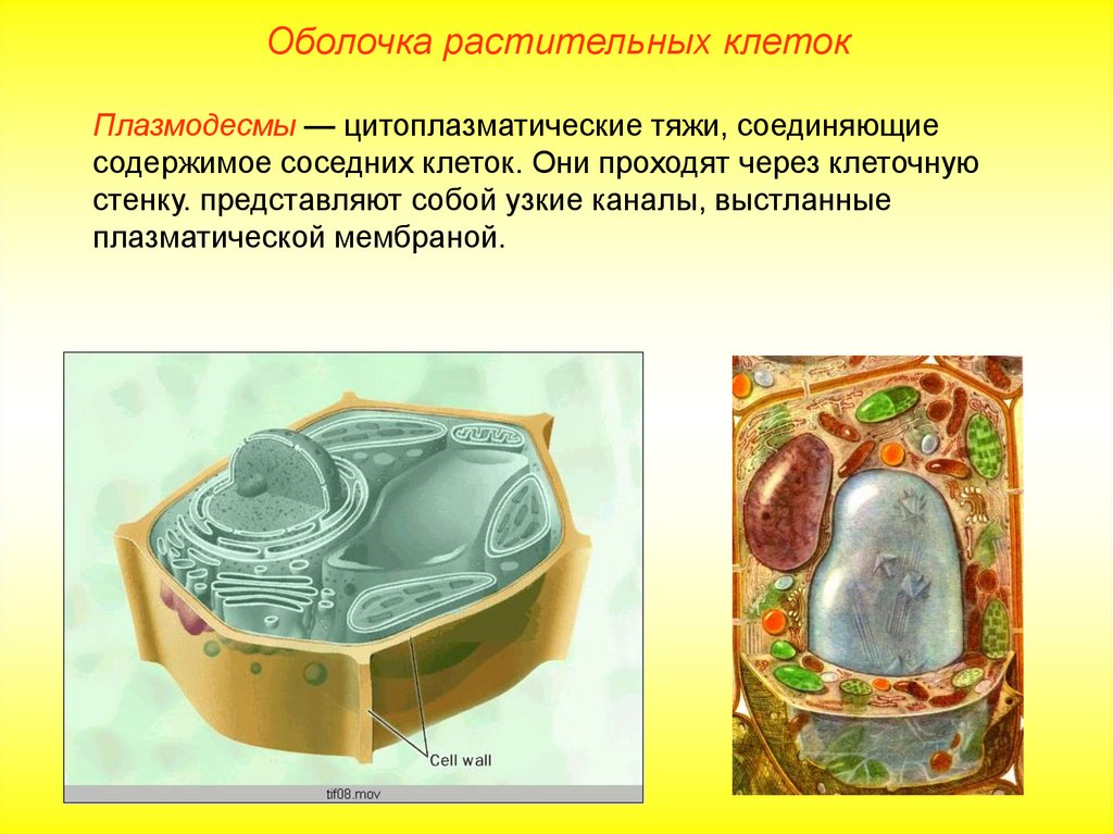Оболочка растительных клетокПлазмодесмы — цитоплазматические тяжи, соединяющие