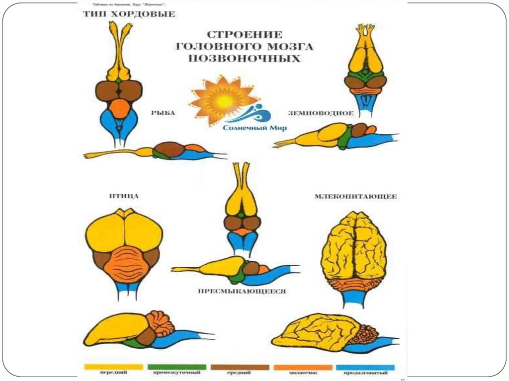 У птиц и млекопитающих передний мозгнаиболее развит и является важнейшим